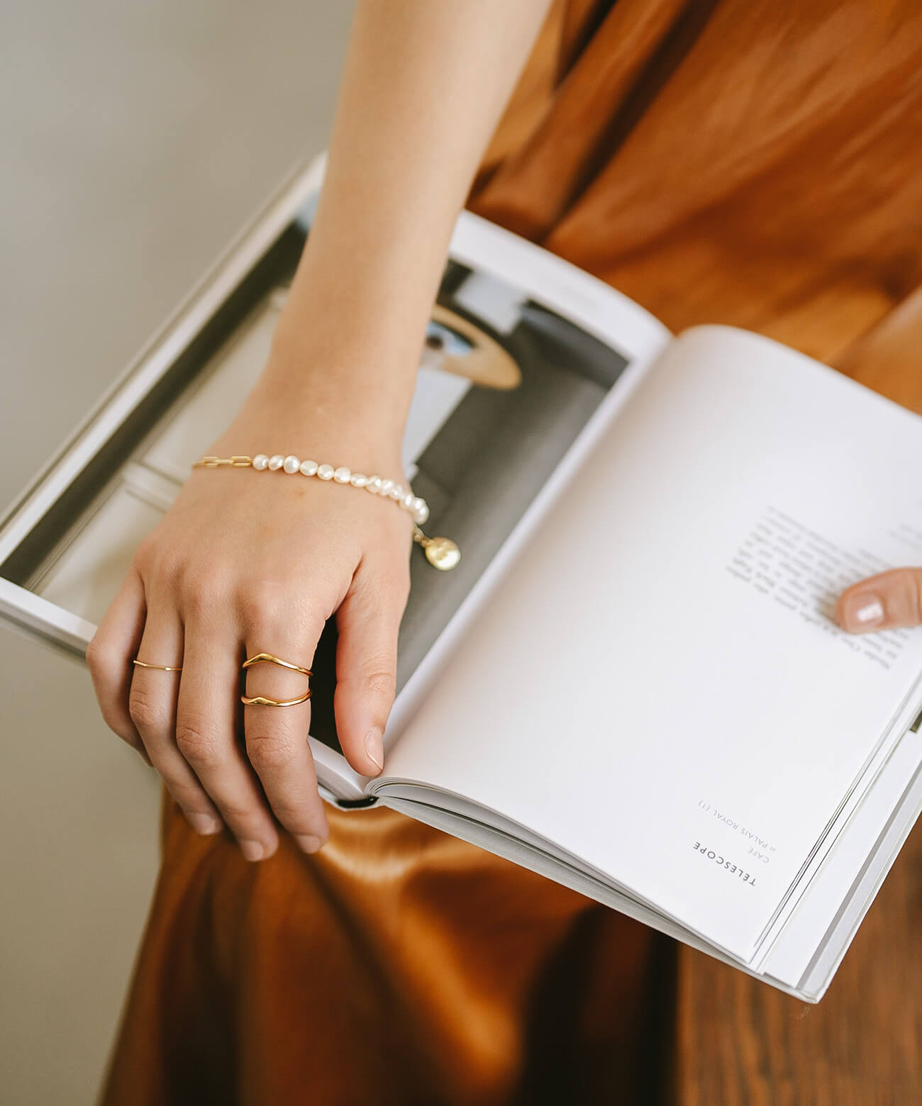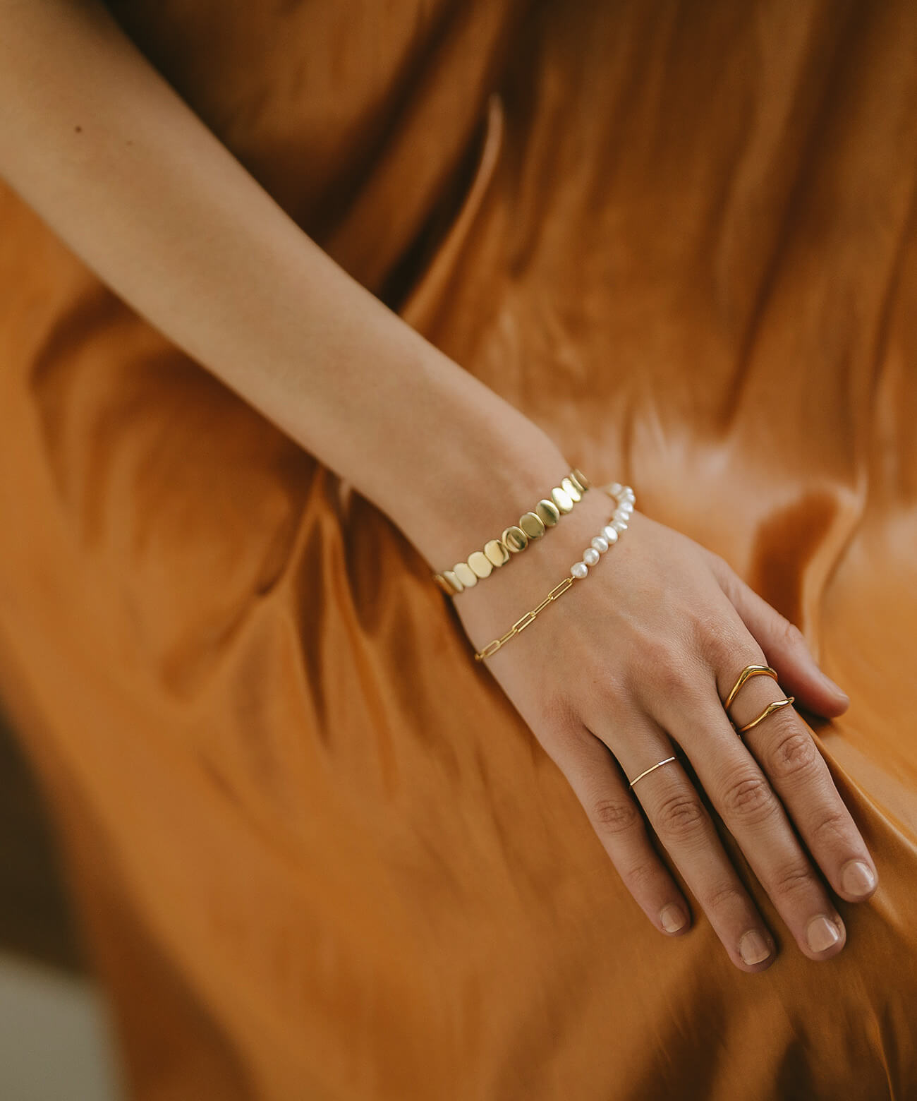 ・トレンドのパール&チェーンブレスレットでキレイめカジュアルに