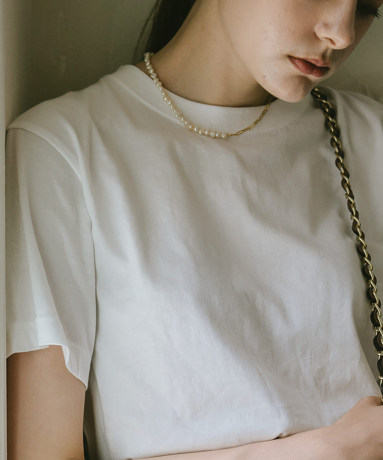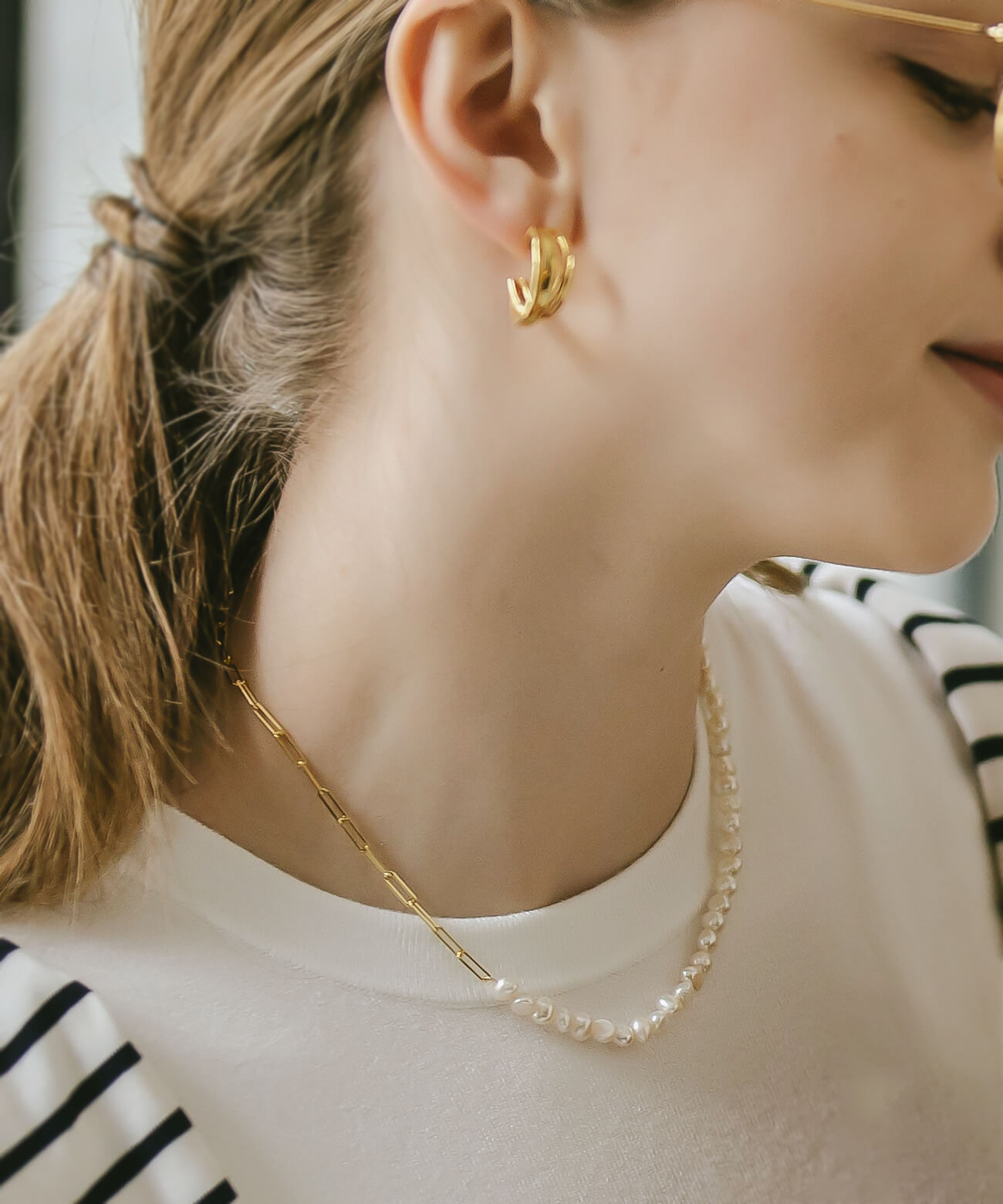 ・小ぶりなバロックパールとスクエアチェーンのハーフデザイン