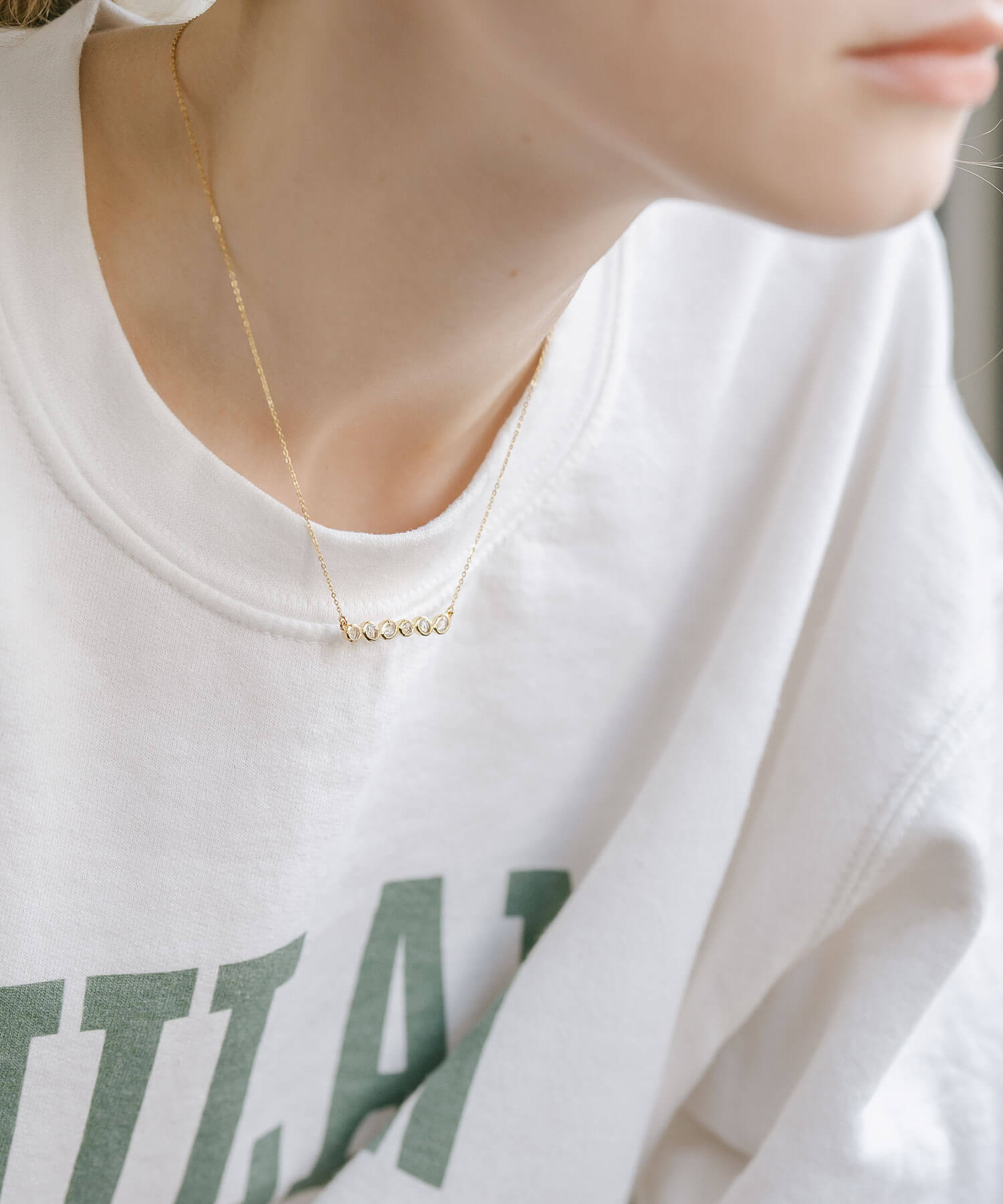 ・透明感のあるホワイトクォーツを6石並べた、バーデザインのネックレス