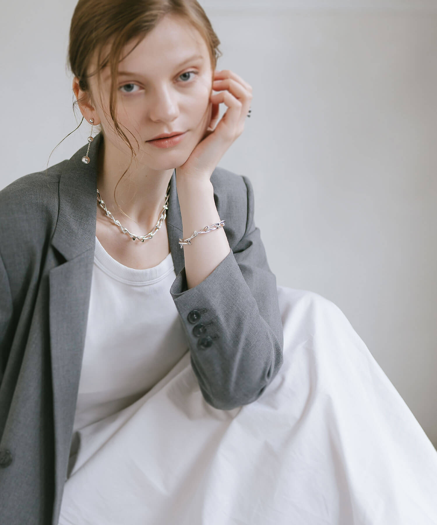 ・Tシャツやシャツスタイルに映えるシンプルなブレスレット