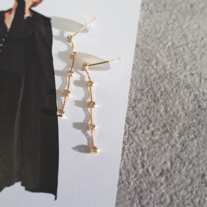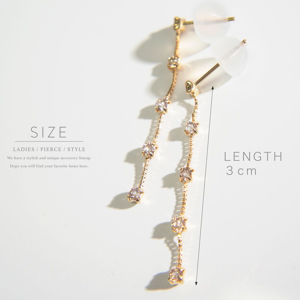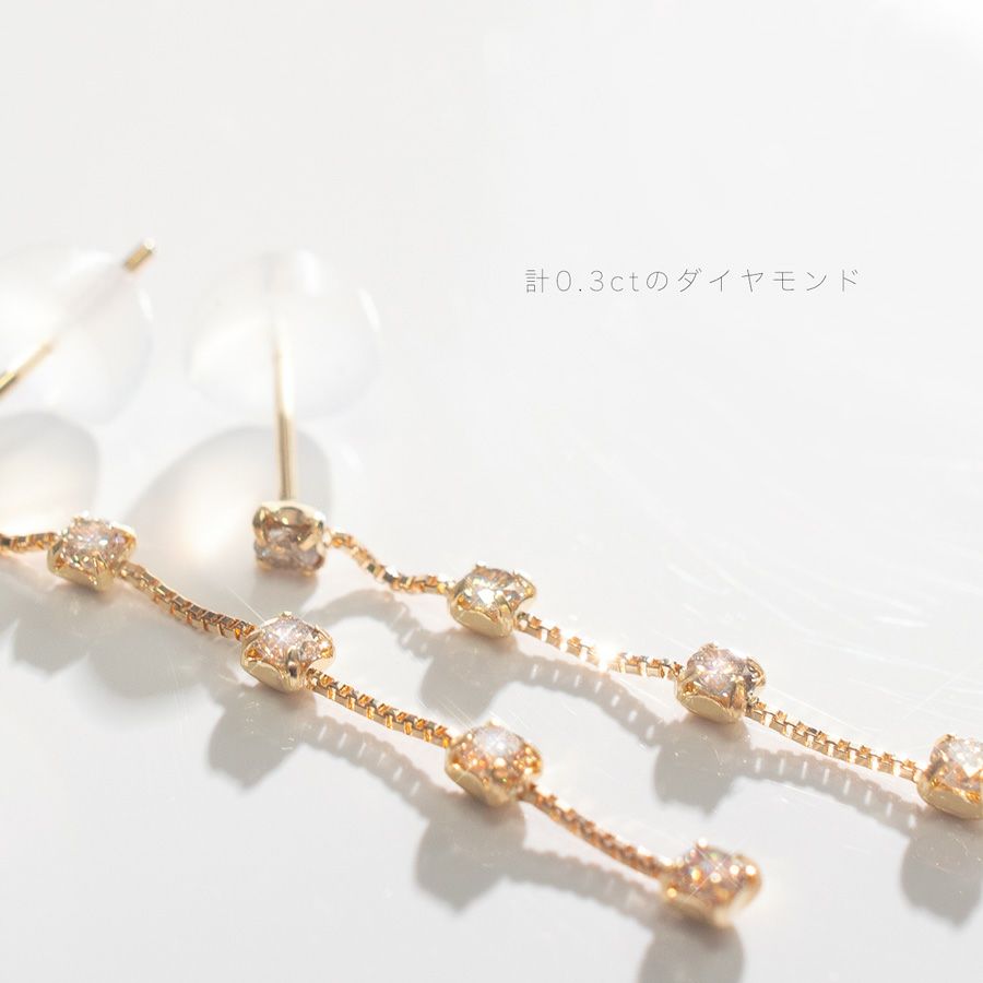 | サイズ | ポスト長さ:約10mm ピアス長さ:約3cm ダイヤ:片耳0.15ct |