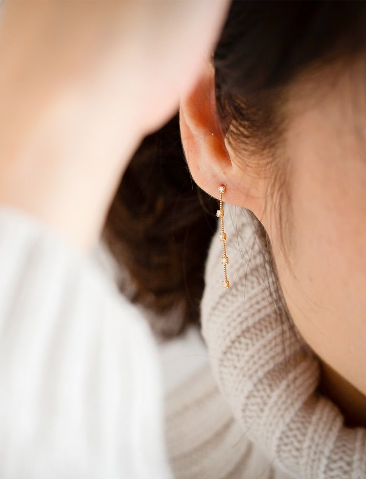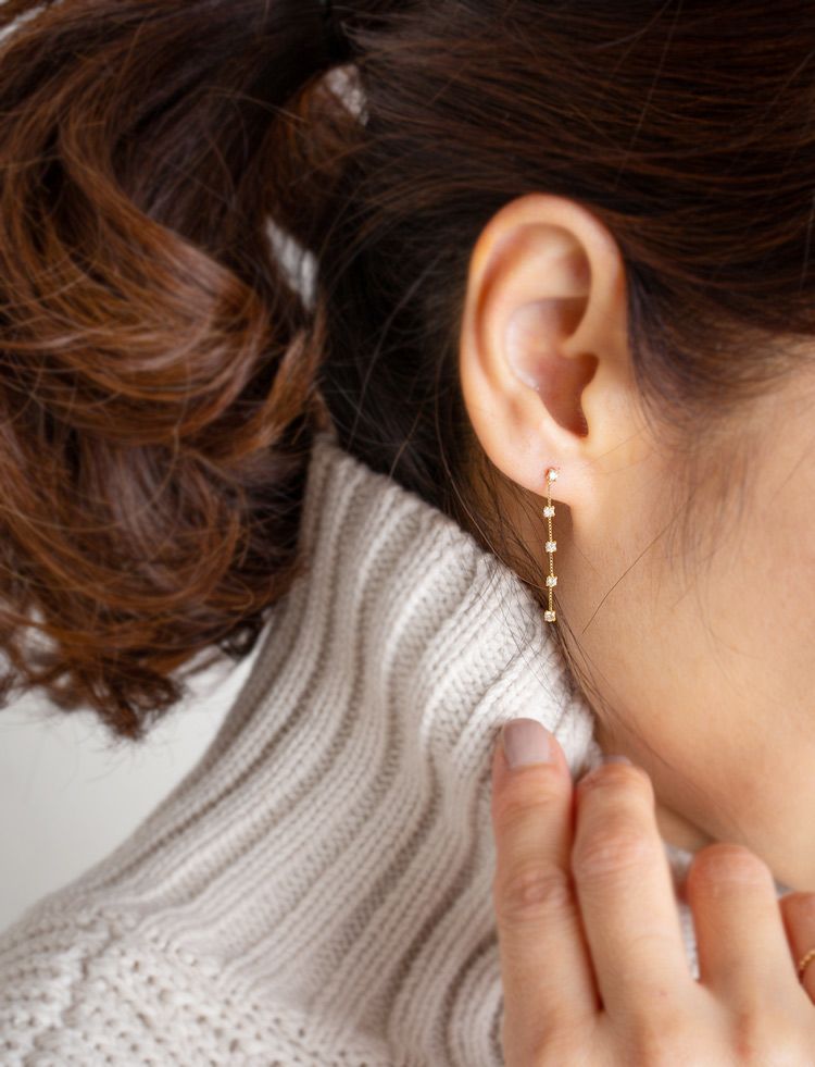 ・5粒のダイヤのキラキラ感で耳元を華やかに