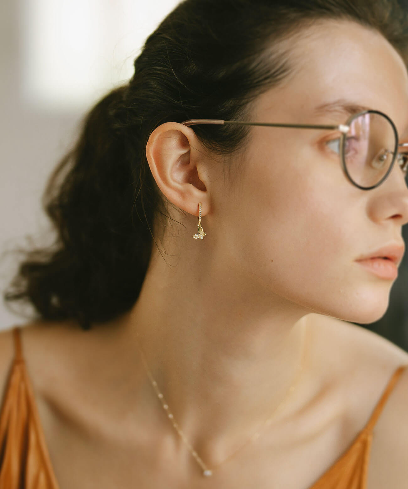 ・キャッチレスで簡単装着できる中折れ式フープピアス