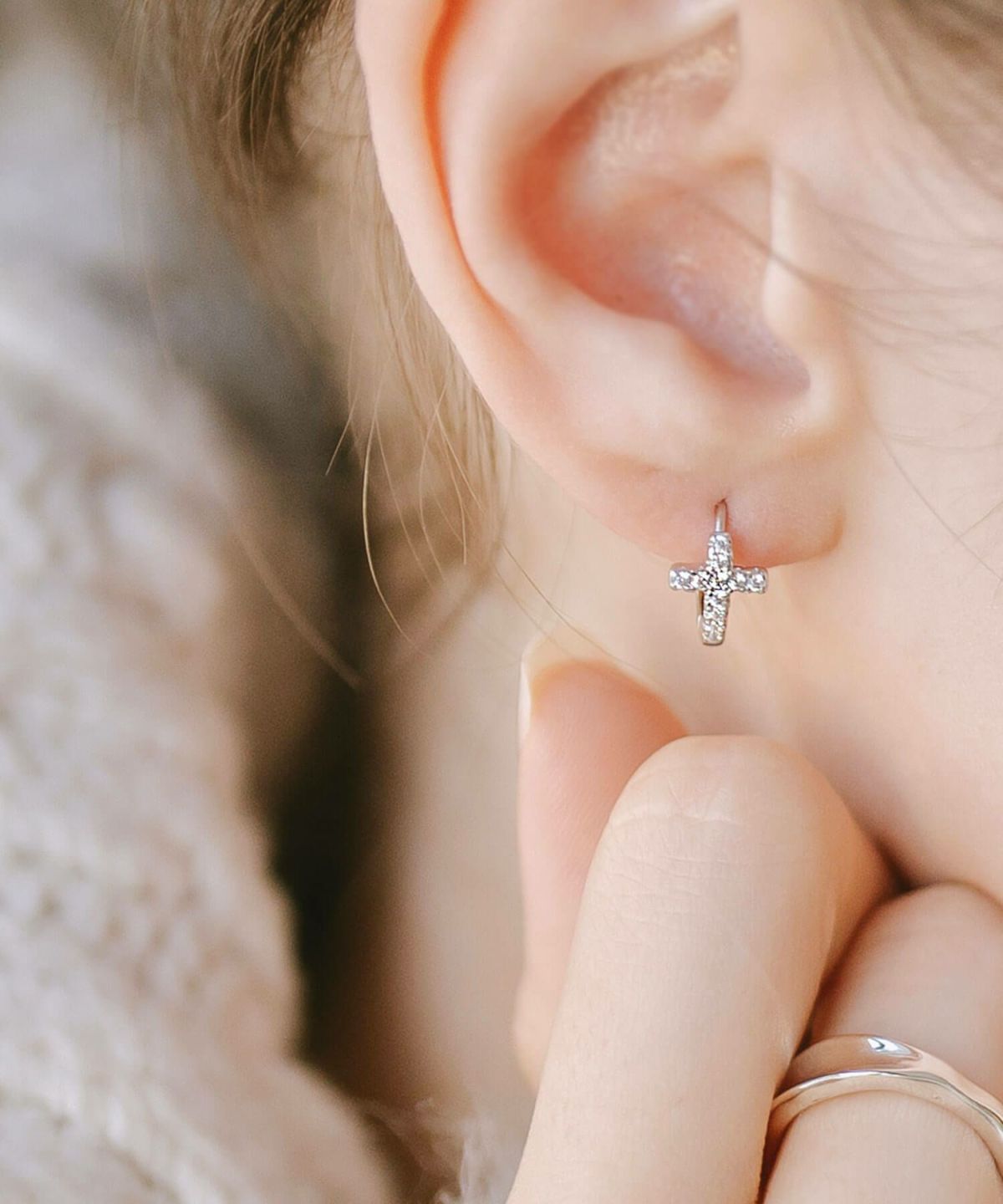 ・キャッチレスで簡単装着できる中折れ式フープピアス