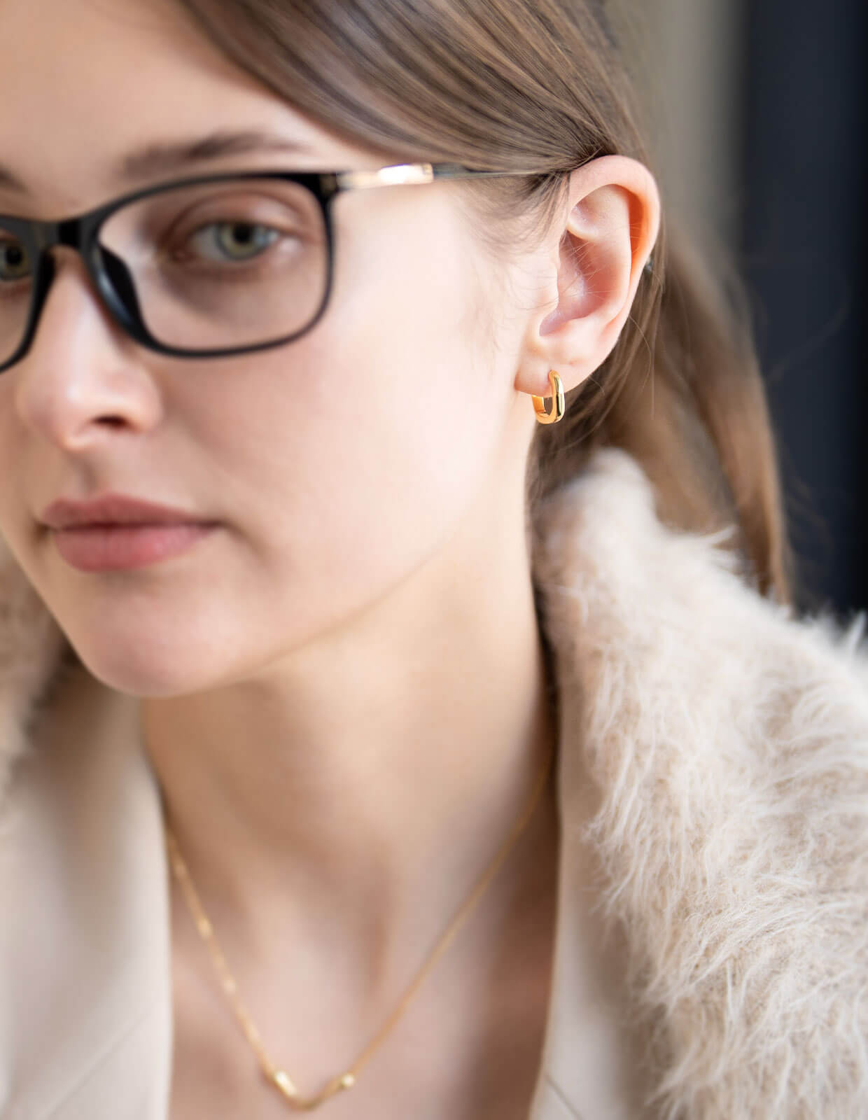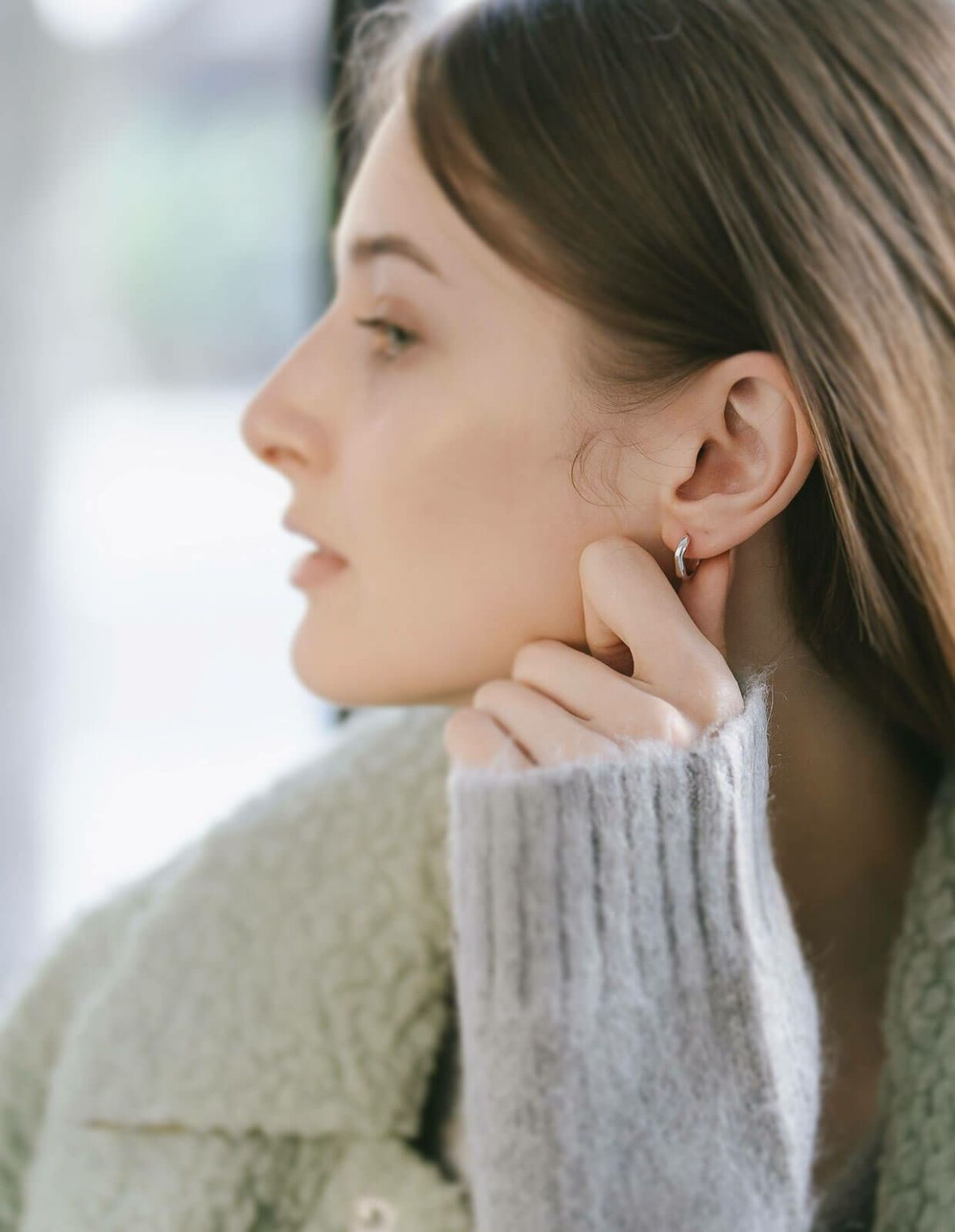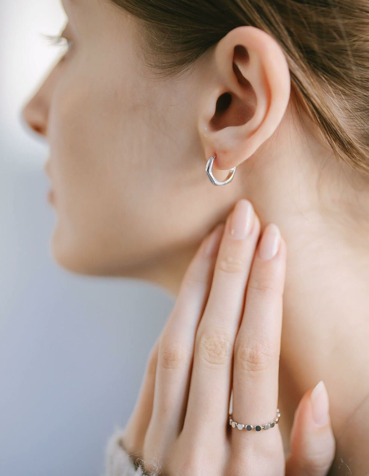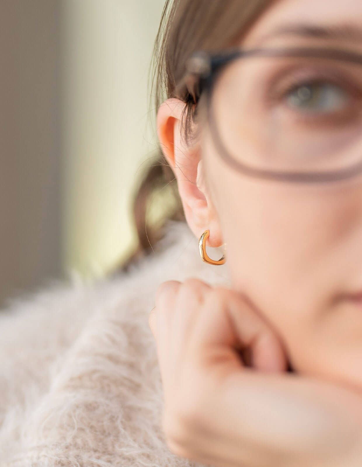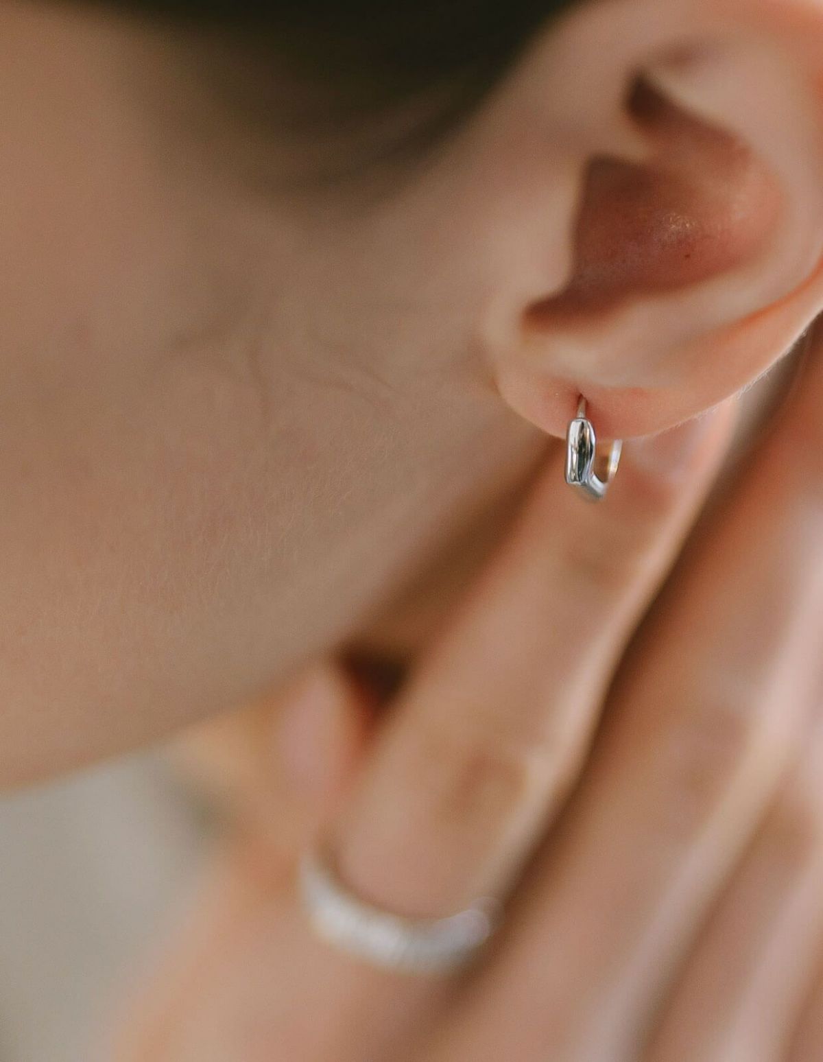 ・ツヤのある小ぶりなフープピアス