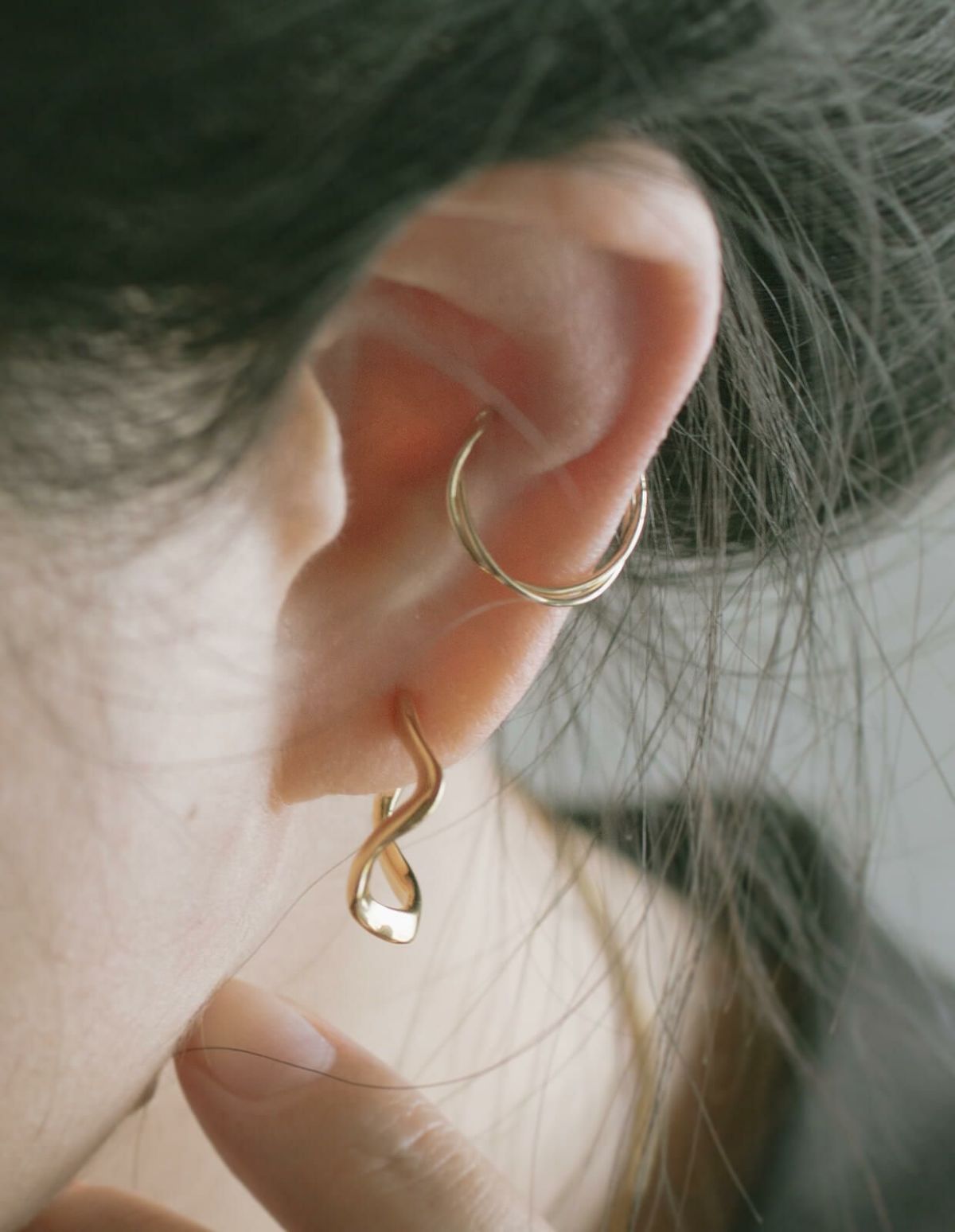 ピンキーリング兼用 地金K10 イヤーカフ イヤカフ シンプル レディース ノンホールピアス ピアリング 華奢 【linia リニア】 10k ゴールド イヤリング