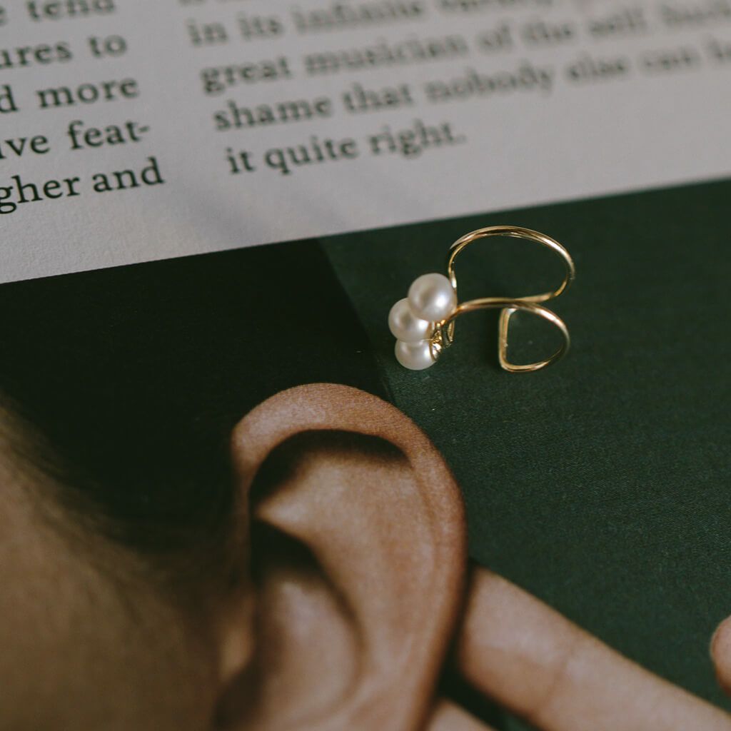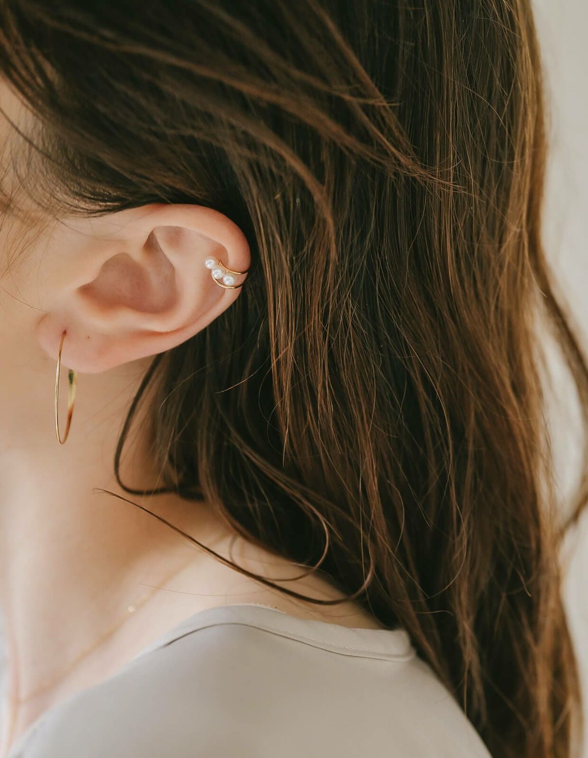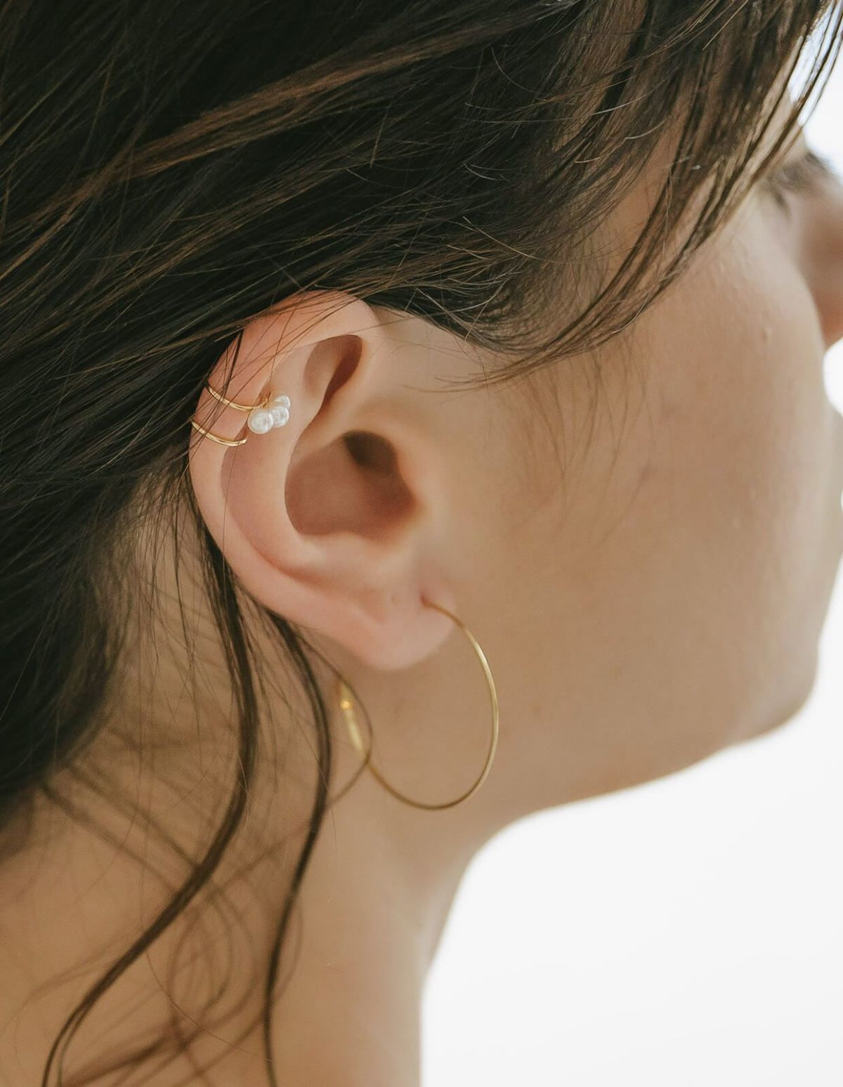 地金K10 ゴールド パール バー イヤーカフ イヤカフ シンプル レディース ノンホールピアス ピアリング 華奢 【LOFAR ロファール】 10k ゴールド仕上げ イヤリング