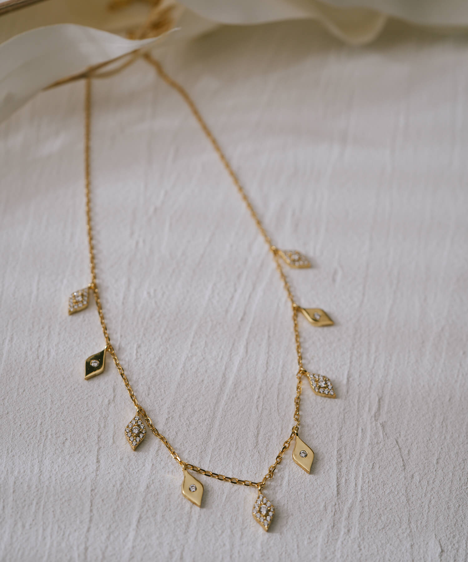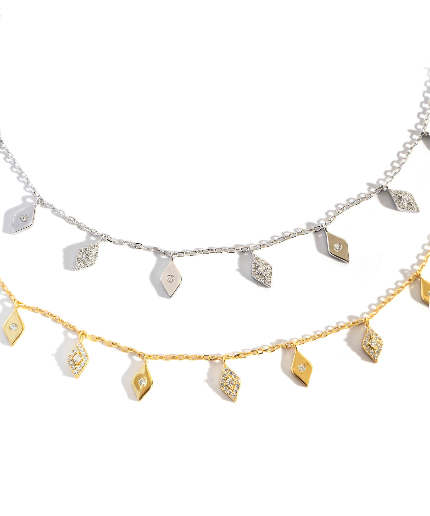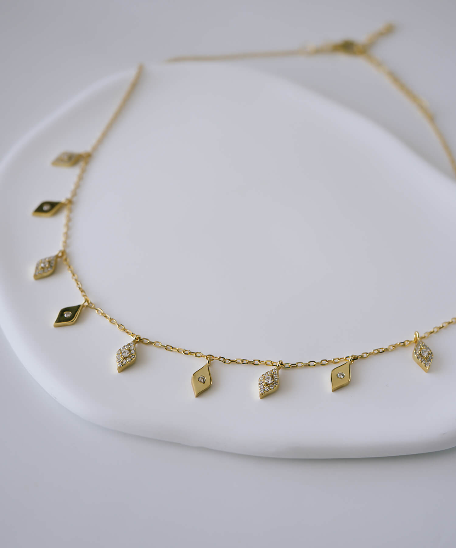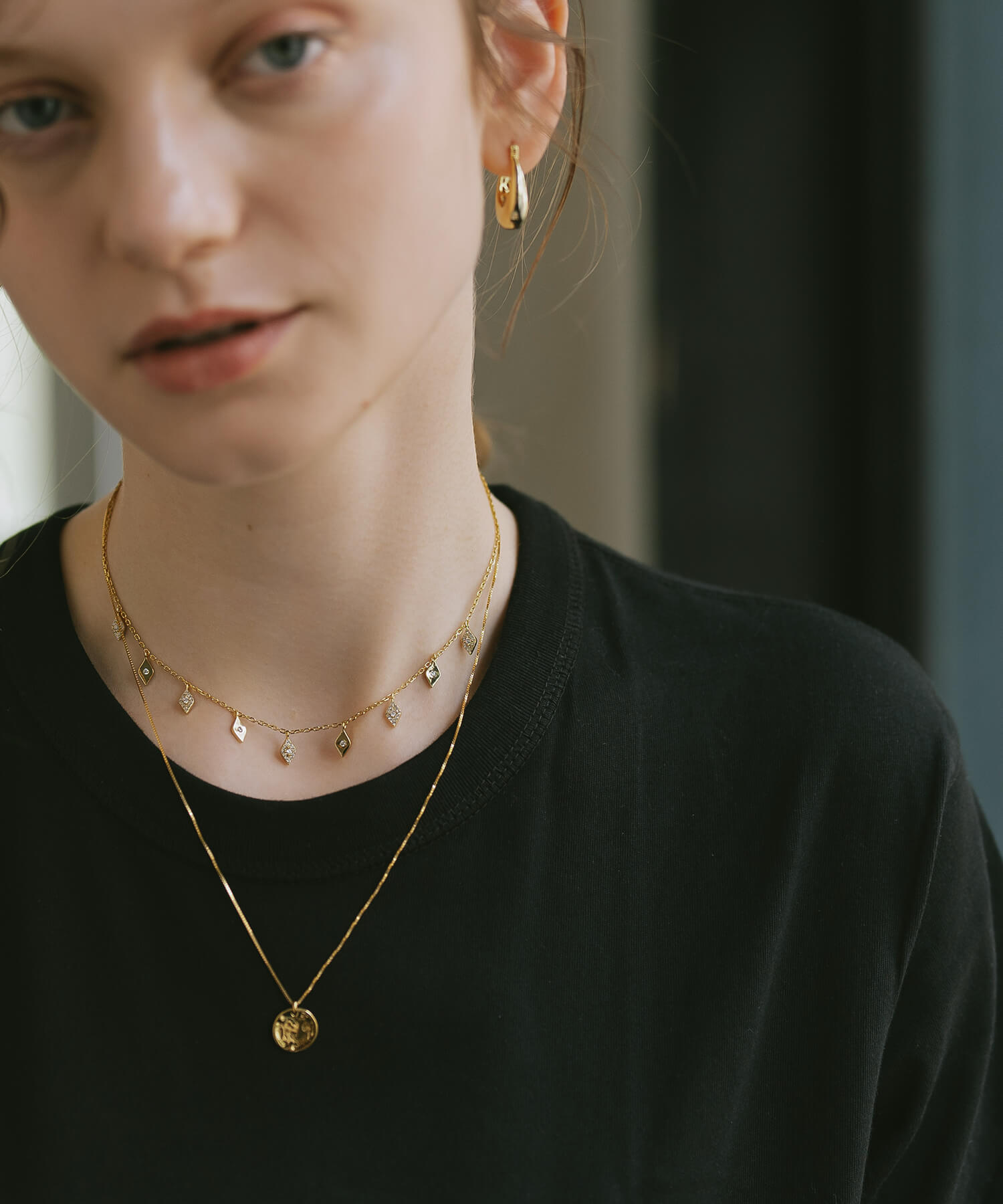 ・小さなジルコニアが煌めく、菱型の繊細なフリンジ