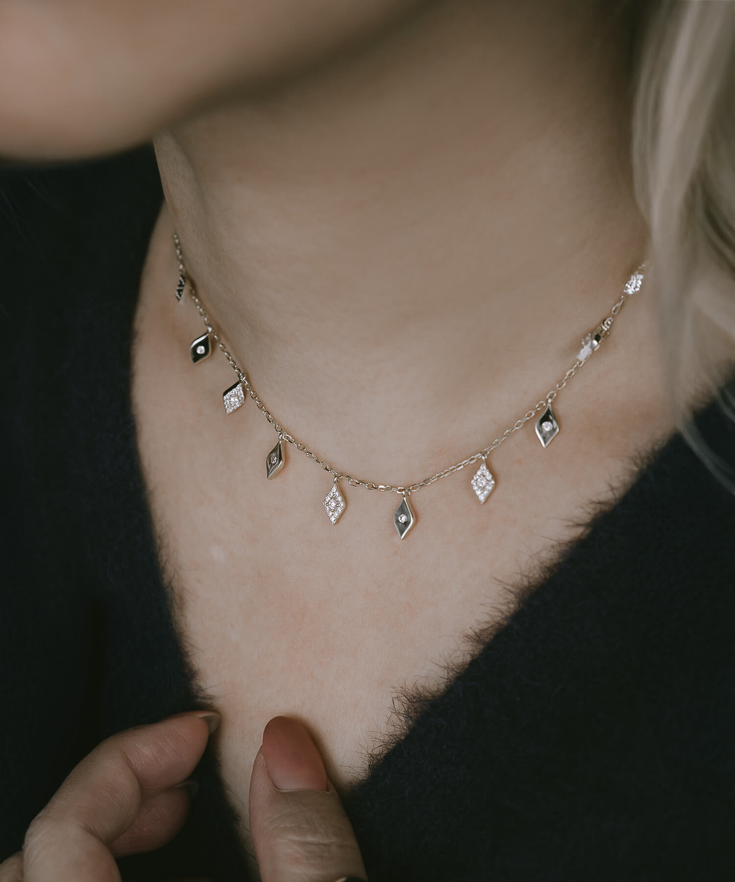 ・エレガントに揺れる全長33cmのチョーカーネックレス