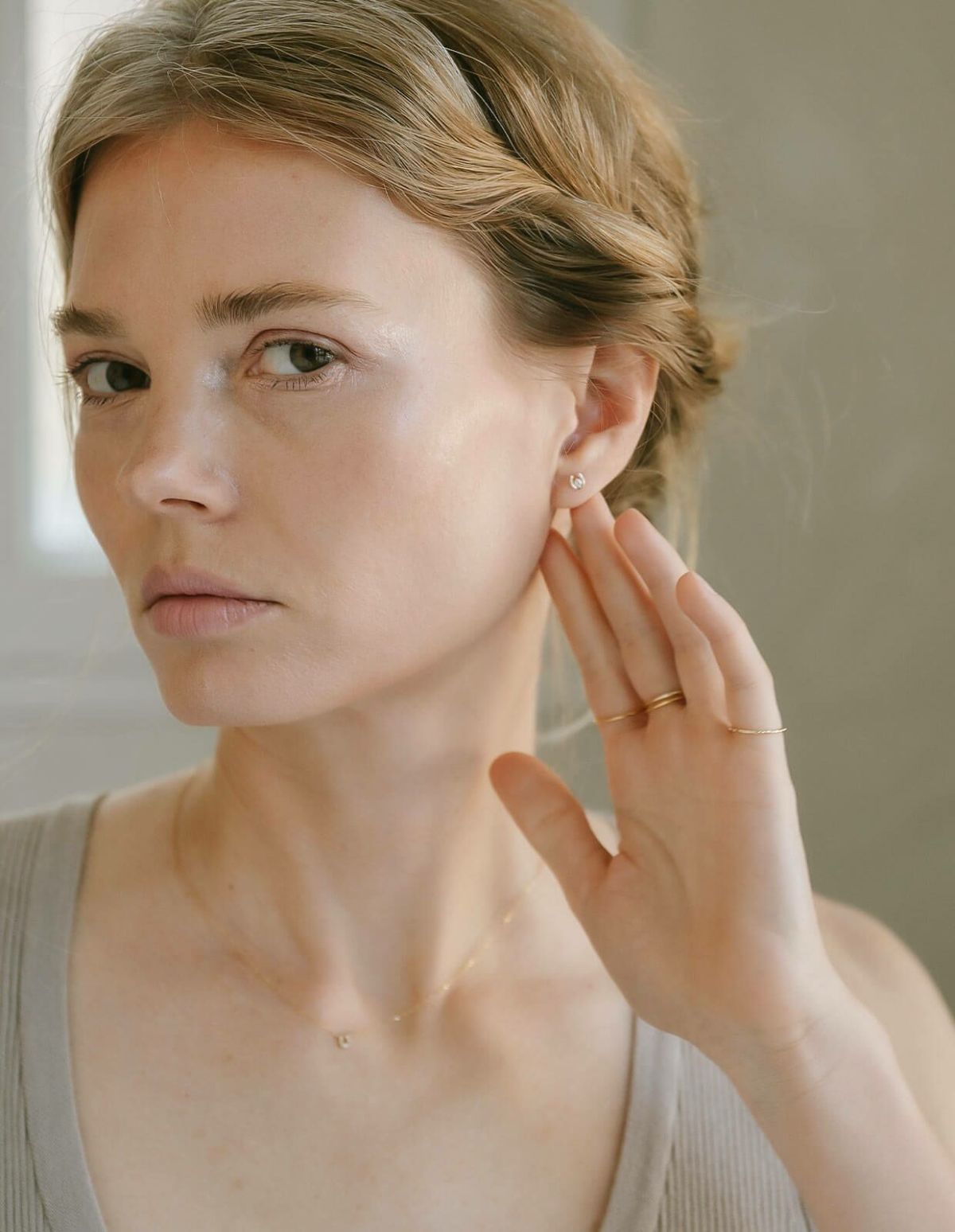 ・さりげないピアスで上品な印象