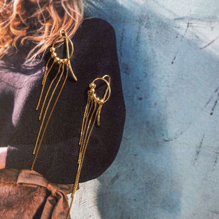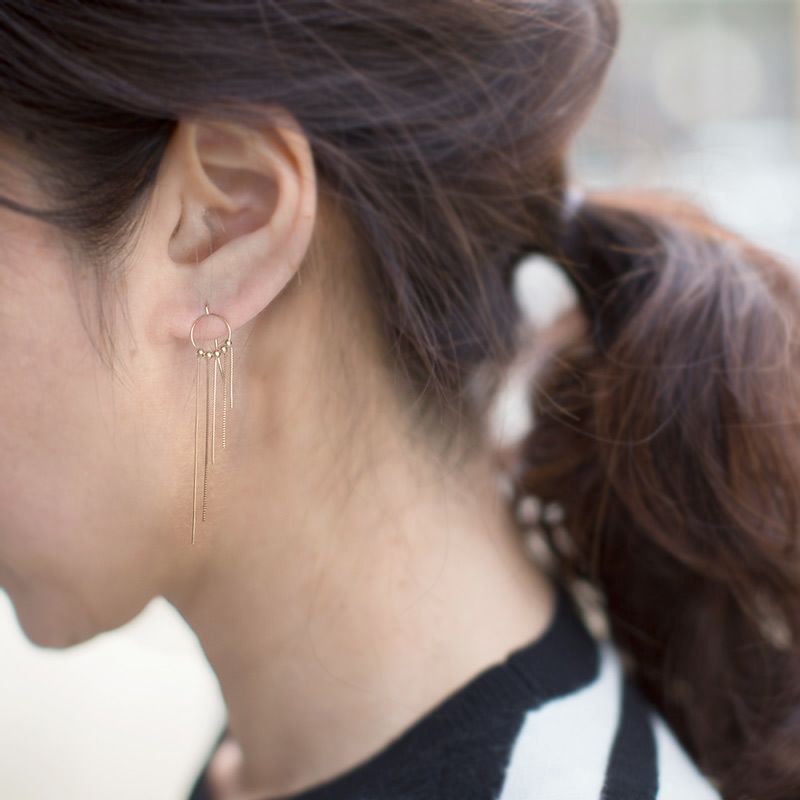 ・18金ゴールドのチェーンフリンジ付きピアス。