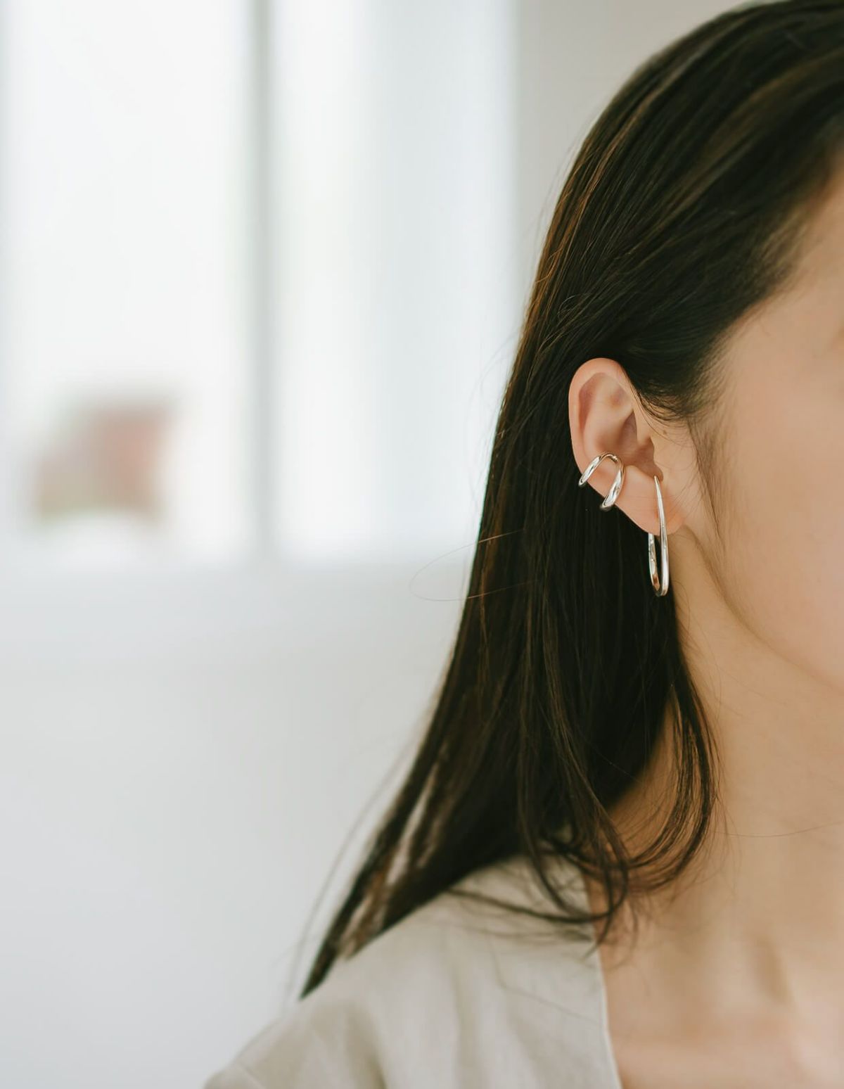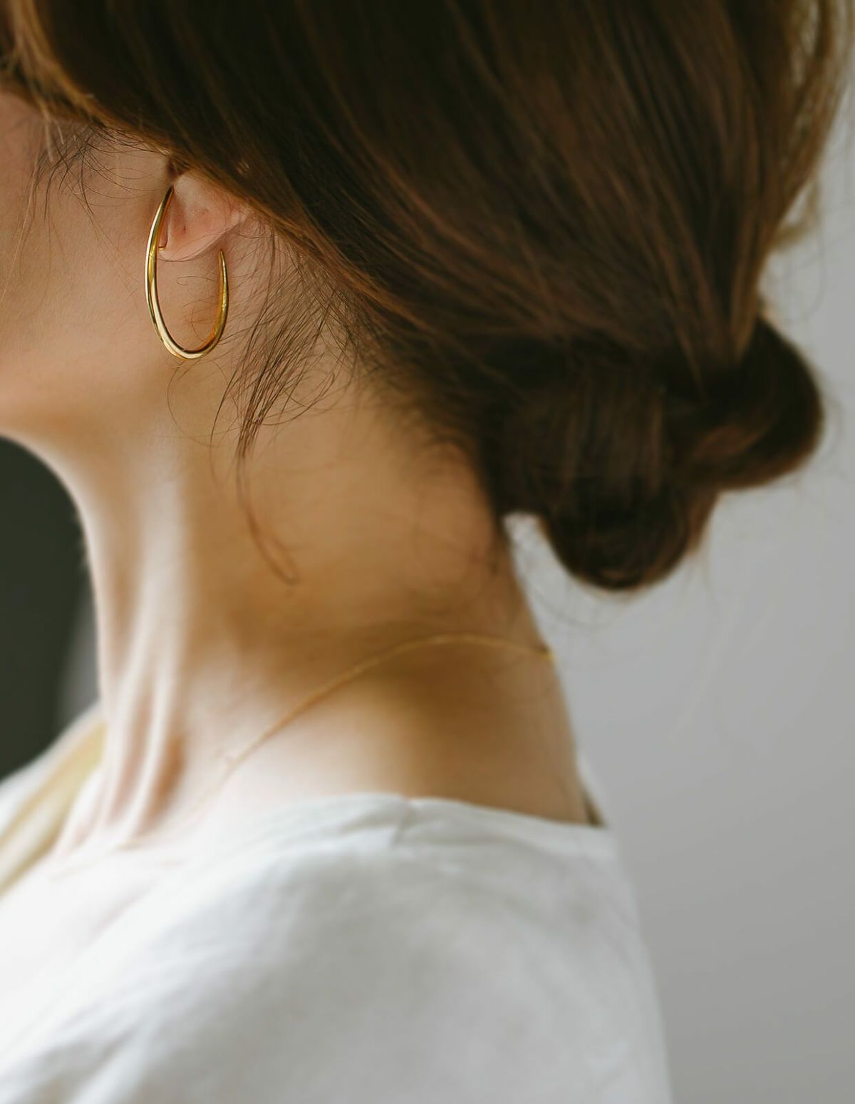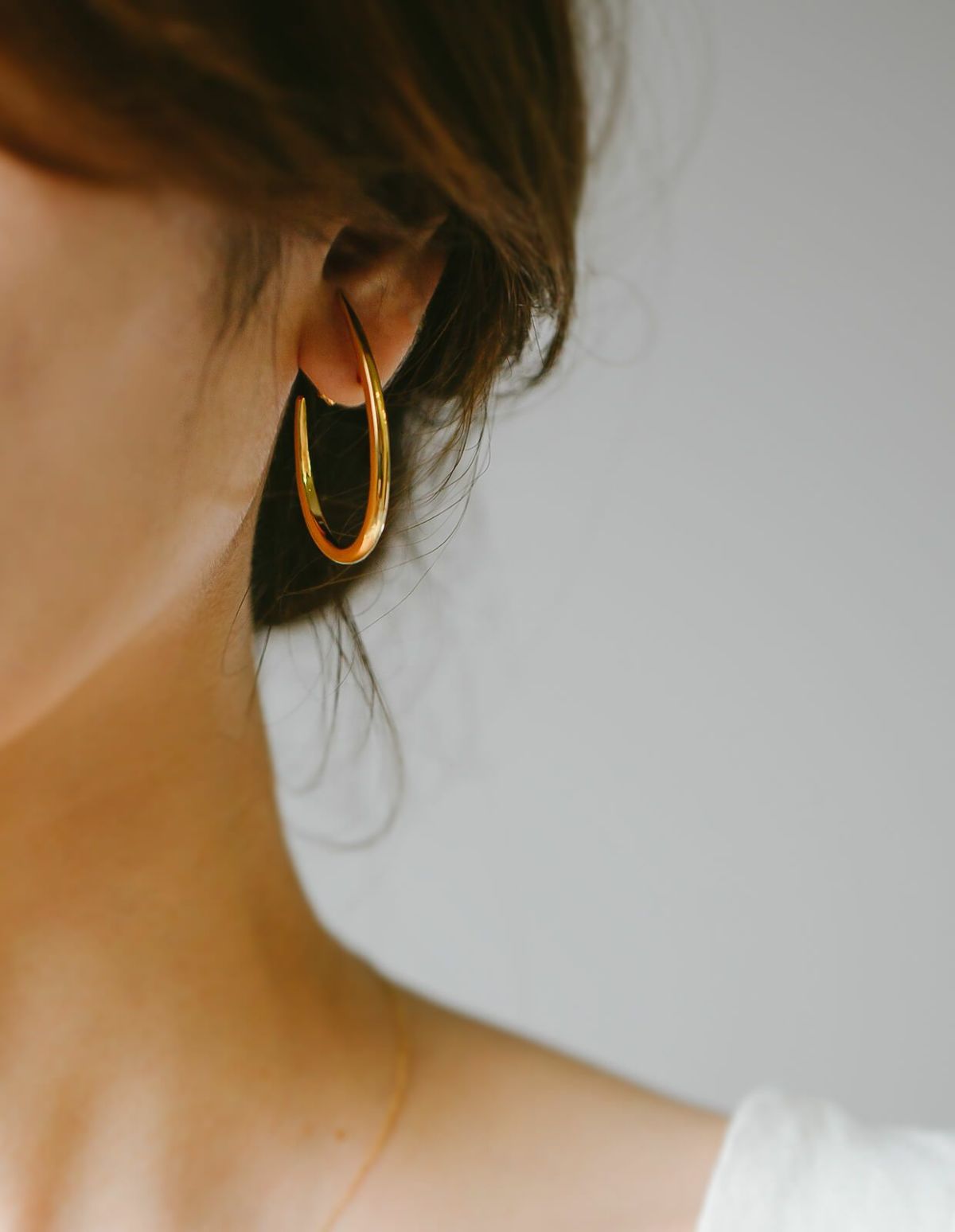 ・ツヤッとしたドロップシェイプのハーフフープピアス